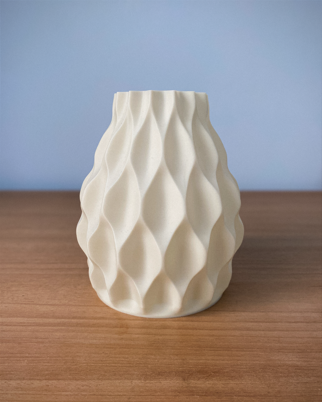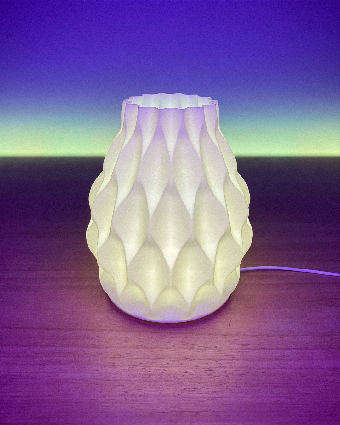 AURA es una pieza decorativa contemporánea que combina forma orgánica y textura geométrica, creando un efecto visual sofisticado incluso apagada.